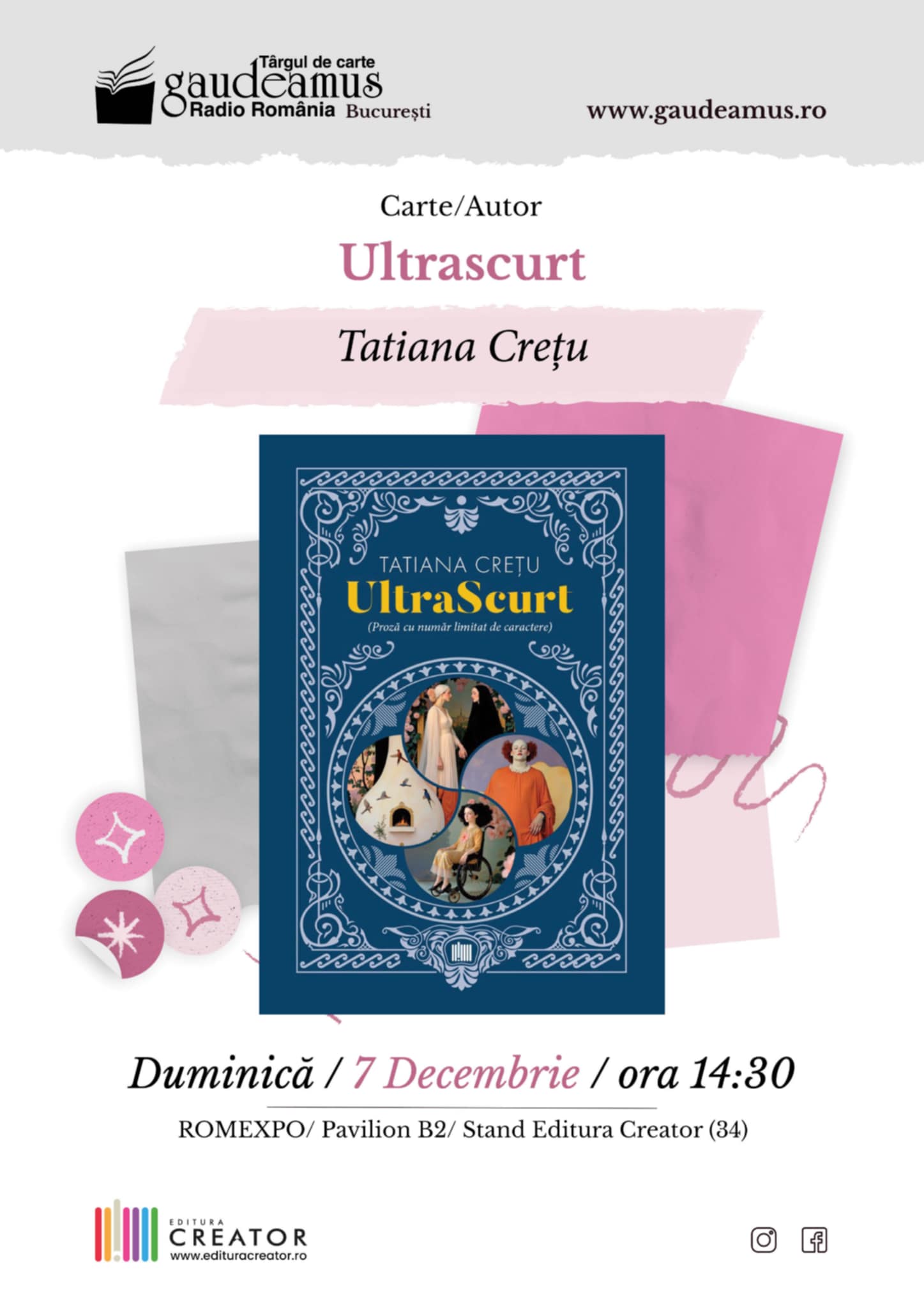 A fost o onoare și o bucurie să particip alături de reprezentanții Editurii Creator, la lansarea cărții de proză ultrascurtă (ficțiune). Atmosfera a fost plină de emoție, mai ales că am avut ocazia să dialoghez cu cei care au făcut posibilă publicarea cărții, să iau contact cu cititorii, să răspund la întrebări și să dau autografe.